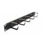 CM-0023 1U kovinski organizator kablov je zasnovan za učinkovito in varno upravljanje kablov znotraj 19-palčnih RACK omar. Zaradi svoje robustne kovinske konstrukcije in petih kabelskih nosilcev omogoča urejeno razporeditev kablov, kar pripomore k boljši organizaciji in preprečuje poškodbe kablov ob odpiranju ali zapiranju omare.