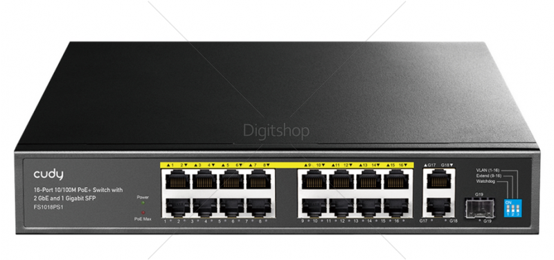 S svojo zanesljivostjo in omogočanjem visoke kakovosti prenosa je 16-portno preklopno stikalo PoE FS1018PS1 idealna rešitev za uporabo v napeljavah CCTV IP. 16 portov podpira funkcijo Power over Ethernet (PoE).