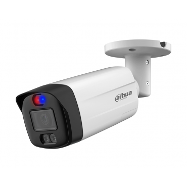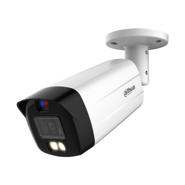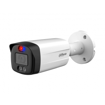 Kamera Dahua HAC-ME1809TH-A-PV je napredna 4K HDCVI barvna kamera s funkcijo aktivnega odvračanja, ki zagotavlja visokokakovostno 24/7 barvno sliko. Opremljena je z rdeče-modrimi opozorilnimi lučmi, vgrajenim mikrofonom in omogoča največ 15 sličic na sekundo pri ločljivosti 4K. Ima fiksni objektiv 2,8 mm z dosegom osvetlitve do 40 metrov. Ohišje je odporno na vremenske vplive z zaščito IP67, napajanje pa je 12V±30% DC.