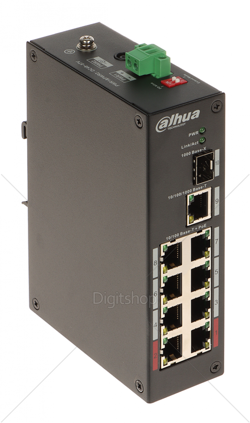 Switch PFS3110-8ET-96-V2 je naprava industrijskega tipa, ki zagotavlja tekoči omrežni prenos s hitrostjo 10/100 Mb/s. Tovrstne naprave se lahko uporabljajo v sistemih, ki se izvajajo v industrijskih objektih v neugodnih pogojih kot so visoke ali nizke temperature.