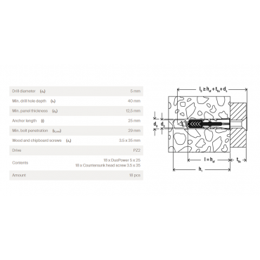 • Minimalna debelina plošče (dₚ): 12,5 mm