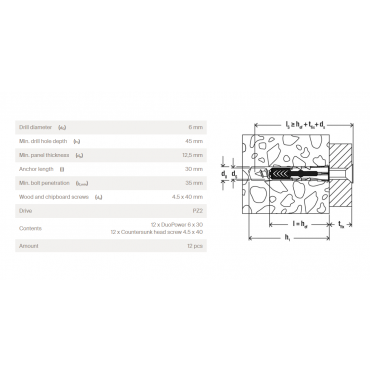 • Minimalna debelina plošče (dₚ): 12,5 mm