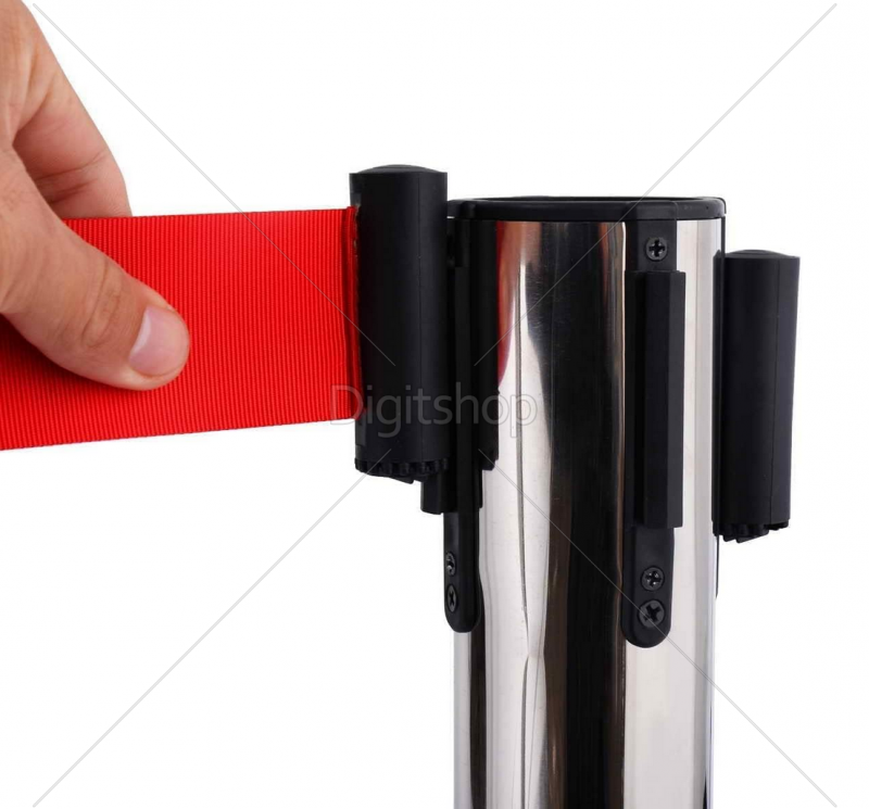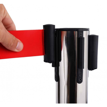 Izvlečni stebriček je opremljen s 190 cm dolgim poliestrskim trakom, ki omogoča hitro in enostavno prilagajanje dolžine glede na potrebe prostora. Z njim lahko učinkovito ločite območja z omejenim dostopom ali usmerjate čakalne vrste v različnih okoljih. Mehanizem izvleka omogoča hitro postavitev in prilagoditev brez dodatnega orodja.