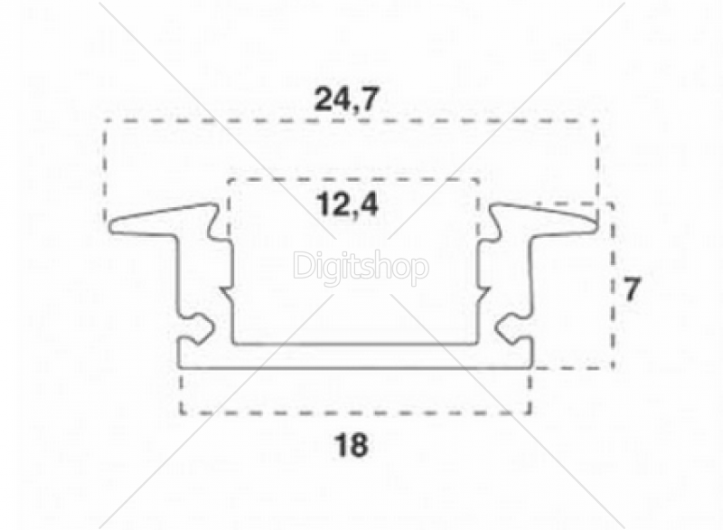 VGRADNI ALU LED PROFIL 2m (24.7x7mm) + 2m POKROV KLIK ON + zaključka in nosilca