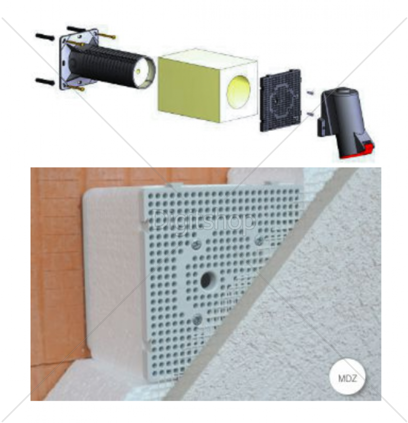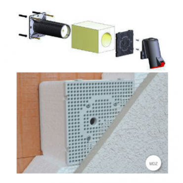- Za vgradnjo električnih naprav (zunanje luči, senzorji gibanja, 400V vtičnice, itd.) v termično izloriane gradbene fasade z debelino od 50 do 200mm.