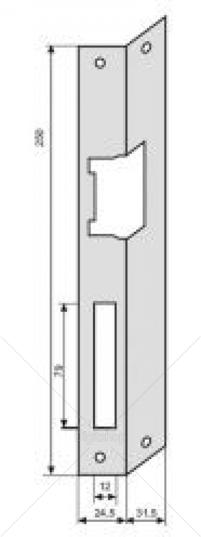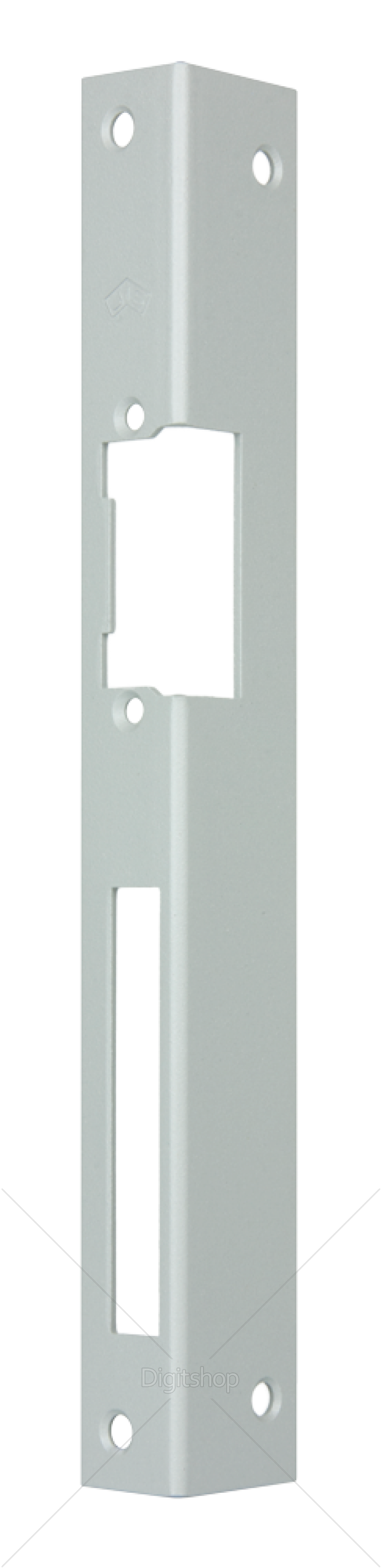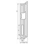 Okvir električne ključavnice za vrata-leva, jeklena, sive barve, dimenzije  250 x 25 x 32mm (višina x širina x globina), odprtina za ključ 79 x 12 mm.