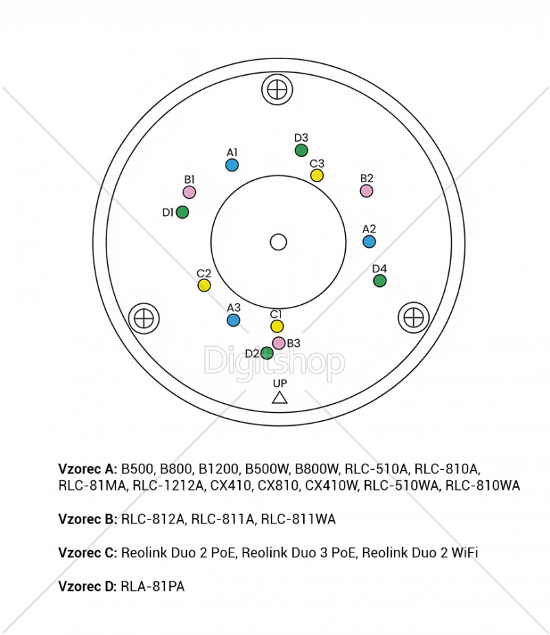 - Zasnovan za: B500, B800, B1200, B500W, B800W, RLC-510A, RLC-810A, RLC-81MA, RLC-1212A, CX410, CX810, CX410W, RLC-510WA, RLC-810WA; RLC-812A, RLC-811A, RLC-811WA; Reolink Duo 2 PoE, Reolink Duo 3 PoE, Reolink Duo 2 WiFi; RLA-81PA