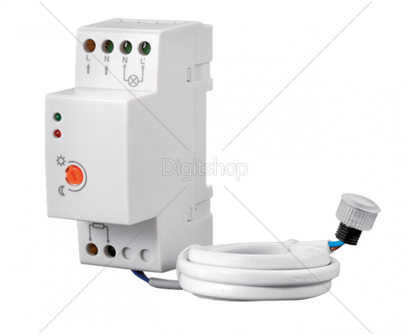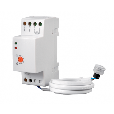 Svetlobno stikalo omogoča vklop in izklop svetil ali naprav (zunanja svetila, žaluzije, vodometi in podobno) glede na nivo svetlobe od 2 do 100 Lux. Stikalni del se montira na DIN letev, svetlobni senzor v obliki tulca ima povezovalni kabel dolžine 1 meter.