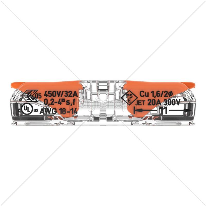 Ta konektor omogoča hitro in varno povezovanje različnih vrst vodnikov brez potrebe po orodju, kar poenostavi in pospeši električne instalacije.